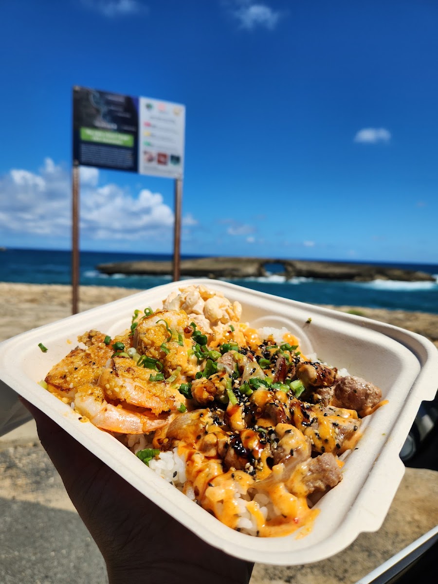 Visitors often highlight the standout juiciness and tenderness of the kalbi, alongside shrimp preparations that pack a punch of garlic and spice with a Hawaiian twist, like the chipotle cajun butter shrimp. The atmosphere around Da Bald Guy leans more toward lively and bustling than relaxed, partly due to its packed parking and takeout lines, but the surrounding North Shore drive makes the journey part of the overall experience.